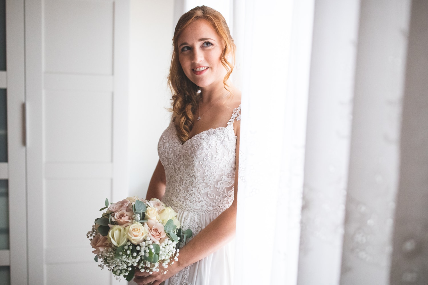 The organization of the wedding was immediately a race against time which then had a setback due to the lockdown. For the choice of the dress I had few ideas and thanks to the site I was able to give shape to my thoughts. The possibility of having identified 3 dresses from which to start allowed me to naturally define what I could like and what would not be good for me. I didn't have to force myself to choose one line over another but certainly having Patrizia explain the clothes and the effect they would have on my body was fundamental. Once the dress was chosen, I was followed step by step with the various tests: shortening the dress with shoes and fixing the straps. I found Patrizia and her staff very professional but not detached, every time you enter the Atelier you really start imagining that day and the emotions you will feel. Another thing that was important to me was having a place close to home, away from traffic and which allowed me to "enjoy the moment" and organize myself without problems for the various appointments. Picking up the dress the day before, which is always a busy day, was also perfect.