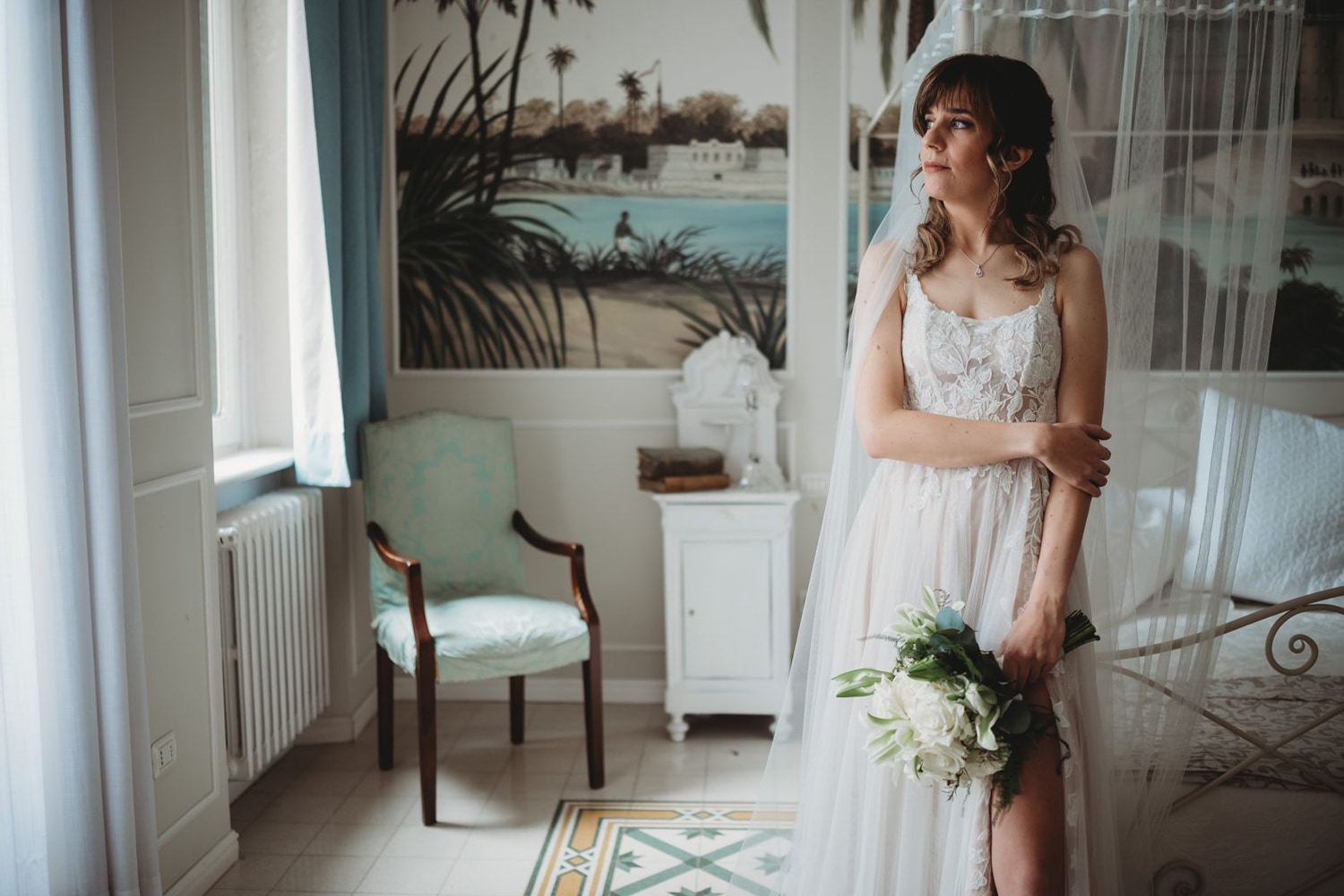 Prove di portamento, consigli, suggerimenti su come accompagnare l'abito in modo elegante, la scelta del velo, la prova con trucco e parrucco per vedermi completa...