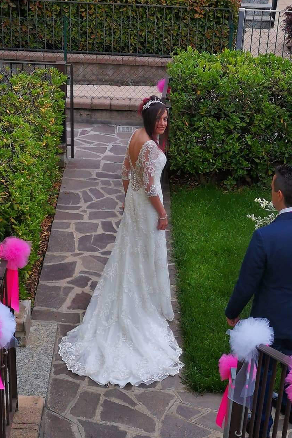 "It was the first and only Atelier that I had visited. I immeditaly noticed a great availability also by phone contact. Patrizia is not a "seller" but a person who put herslef in her job. By her help and trust I felt as a bride. I had felt in love with a dress on the web site, but I had tried some others. Finally I chose the first one, my first love. This experience is still in my heart.