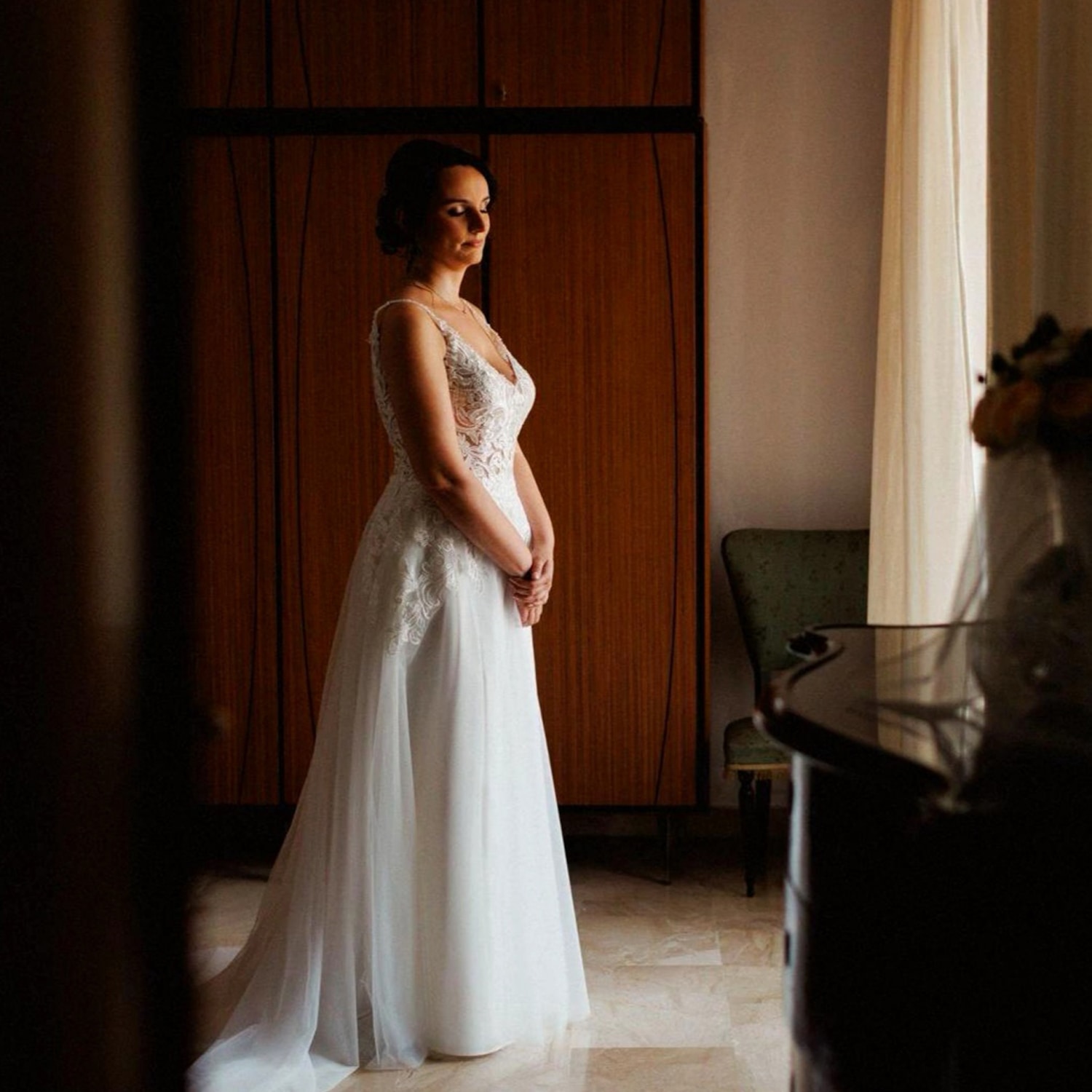From the very beginning, Patrizia and her team showed themselves to be available, patient, and objective in advising me on the choice of the dress and various accessories. It was a wonderful experience that I will always remember. During each fitting, I felt comfortable and pampered, just as a bride should. Her advice on the total look and practical tips, like how to walk in the dress or how to hold the bouquet, were incredibly helpful.