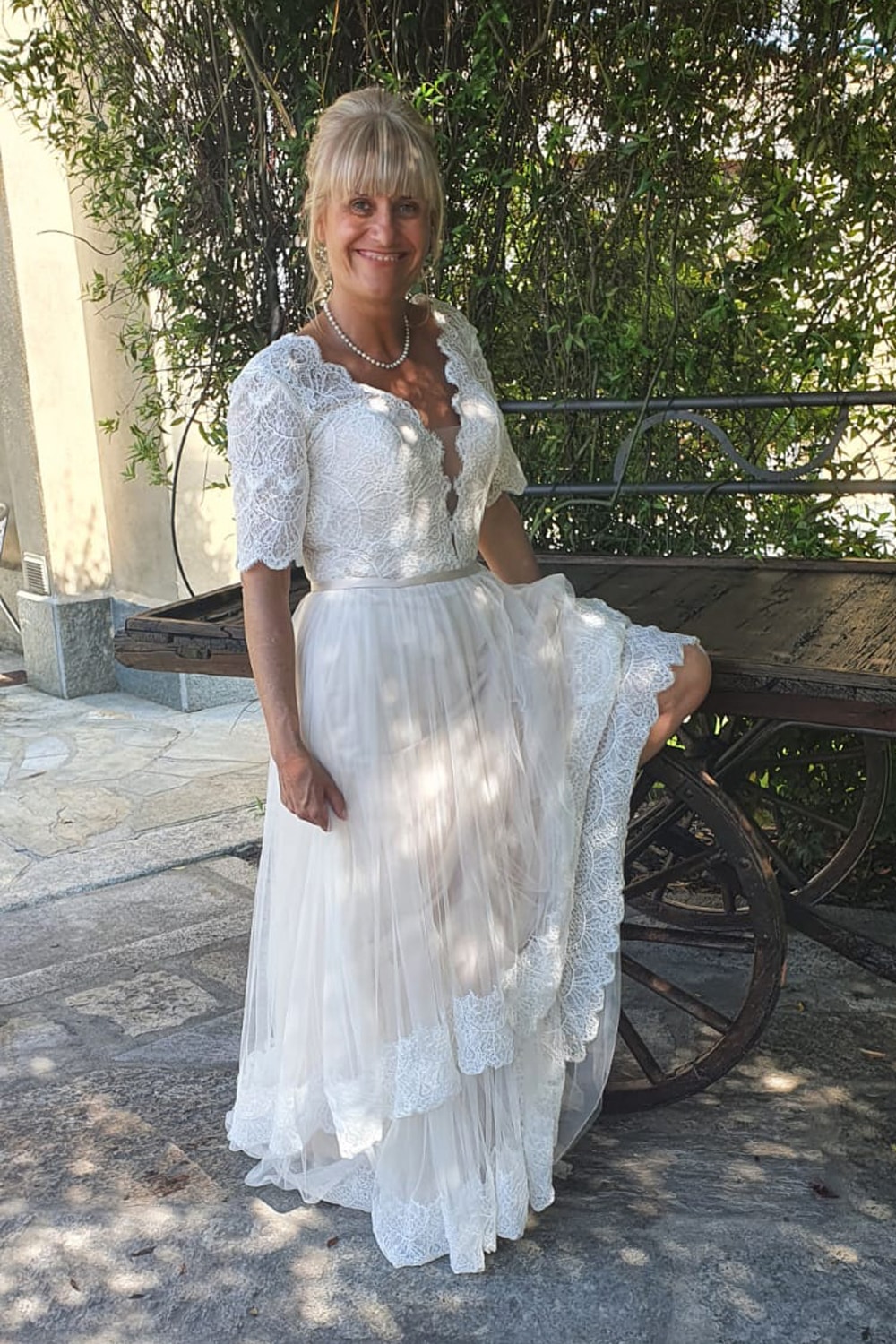 I met Patrizia in a particular period for everyone, we met through video call meetings, something immediately clicked. In the atelier she is a true professional, very prepared, kind and immediately puts you at ease. A sartorial friendship was born between us, like being at home with your mother who takes your measurements. His working method helped me a lot, we searched together for the right dress for me, his friendliness and his ways transformed our meetings into joyful moments.