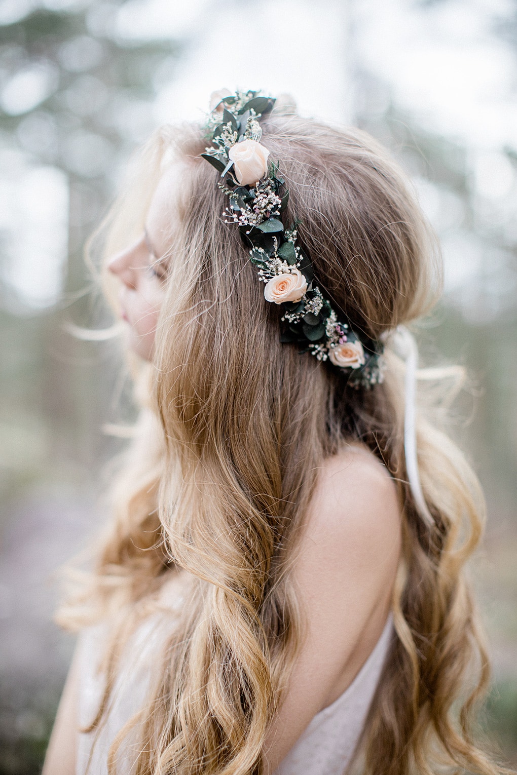 Data la loro bellezza e versatilità, non mi sono limitata solo alle coroncine, ma ho selezionato anche pettinini, forcine e orecchini anch’essi interamente realizzati con fiori veri stabilizzati e arricchiti con preziose decorazioni.