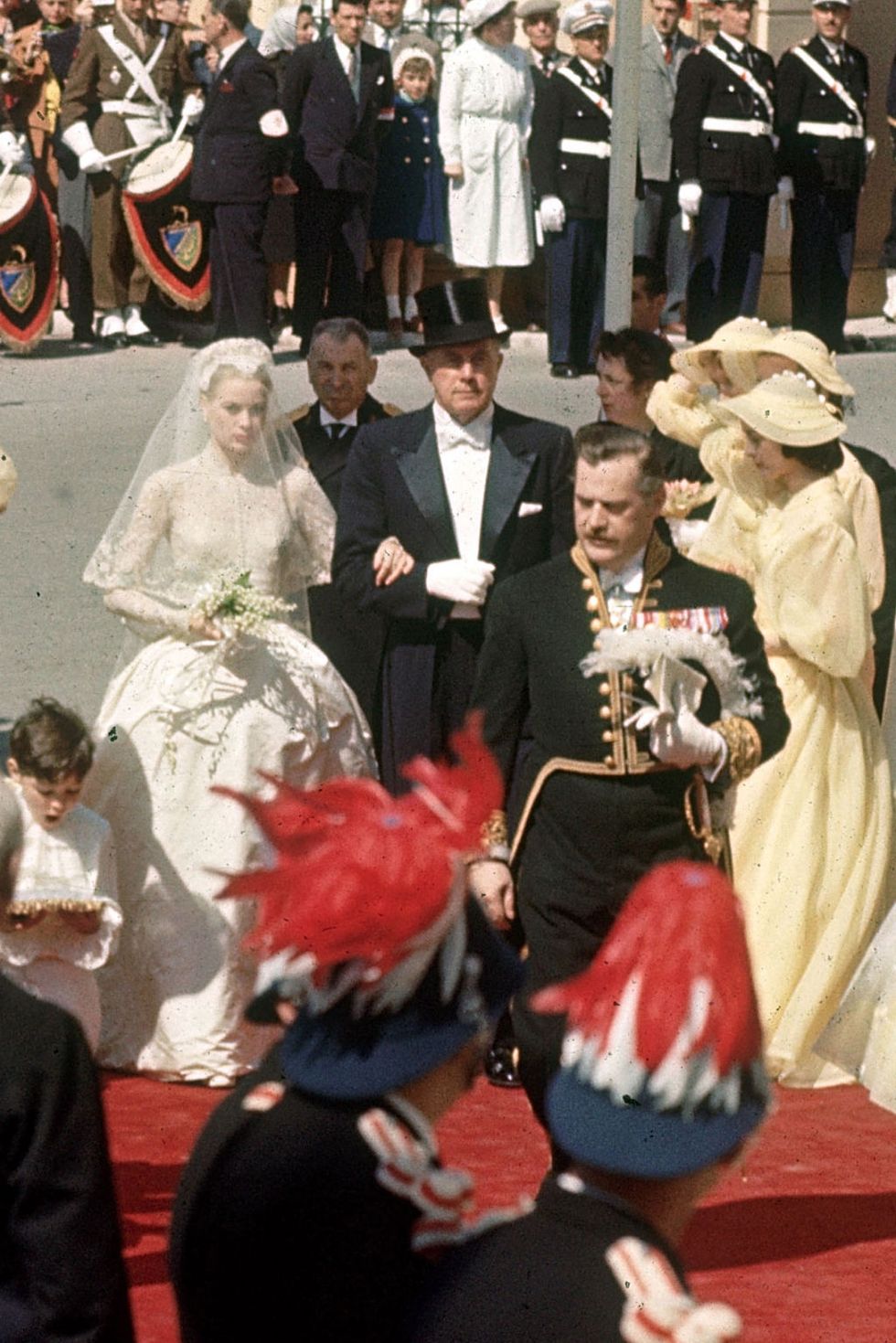 Come star del cinema di prima categoria, il matrimonio di Grace Kelly non era una cosa da poco. Indossava un velo appositamente disegnato che manteneva il suo volto il più visibile possibile ai 600 invitati e si stima che 30 milioni di spettatori la guardassero da lontano, sì perchè il matrimonio dei reali di Monaco è stato il primo matrimonio reale trasmesso in mondovisione.