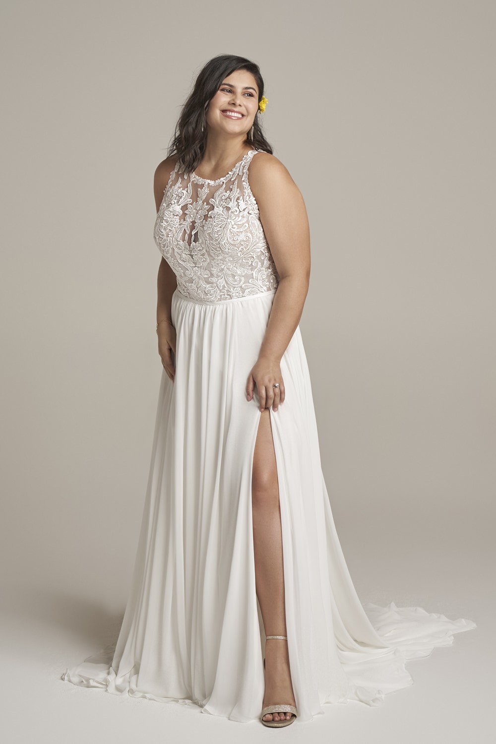 Un vestito da sposa con lo spacco lo possiamo trovare su diverse taglie, la schiena nuda, le spalline sottili oppure la trasparenza sul corpetto.