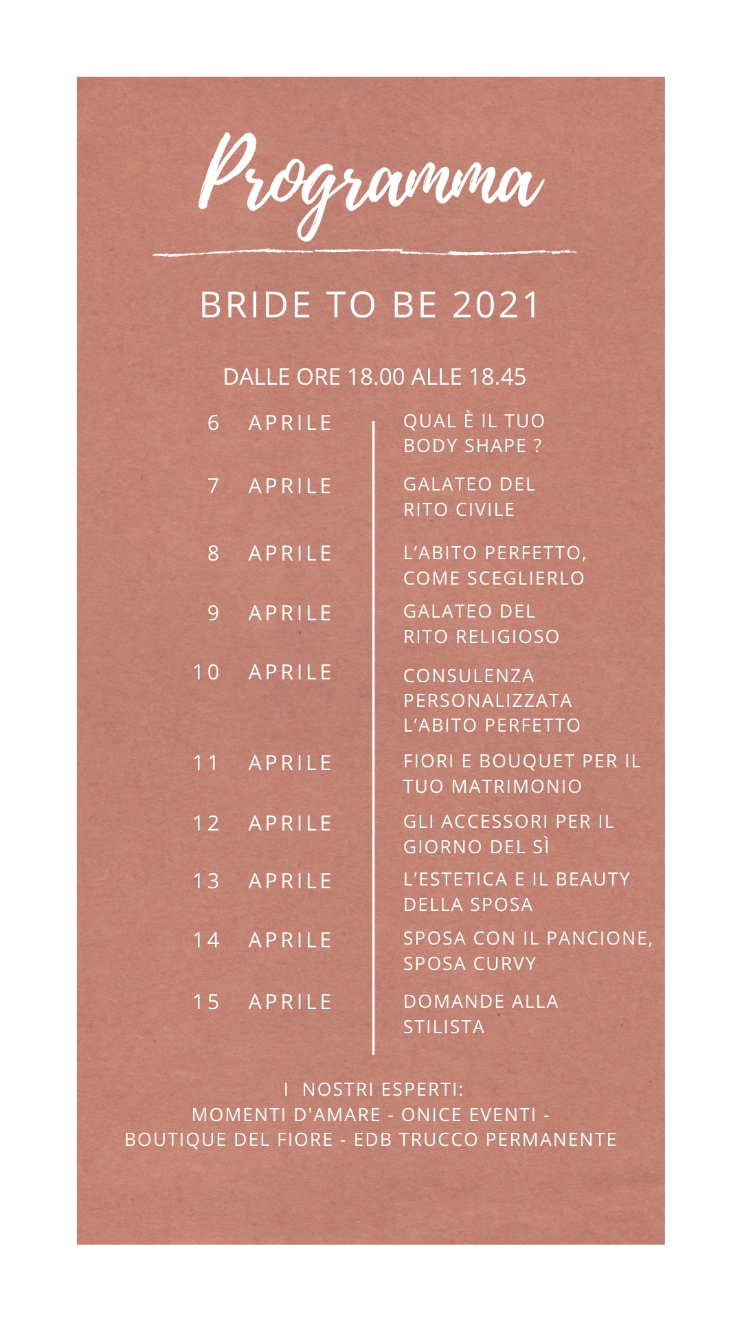 Guarda il programma dei nostri webinar gratuiti per scoprire come organizzare il tuo matrimonio in modo impeccabile.