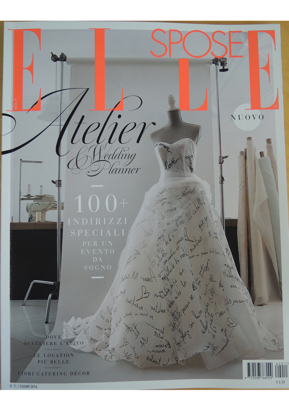 Un altro importantissimo riconoscimento: in edicola da lunedì allegato a Elle c'è ElleSposa - Atelier & Wedding Planner: 100 indirizzi speciali per un evento da sogno (scelti in tutta Italia tra abiti, location, fiori, wedding planner ecc.) e al numero 15 parlano di noi !!!! Che onore, che gioia, ancora una volta una spinta in piu' per continuare il nostro lavoro.