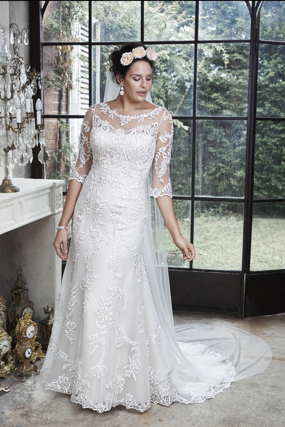 La mia proposta è l'abito Verina della collezione Maggie Sottero. Questo abito da sposa in pizzo è secondo me quello giusto per te.
