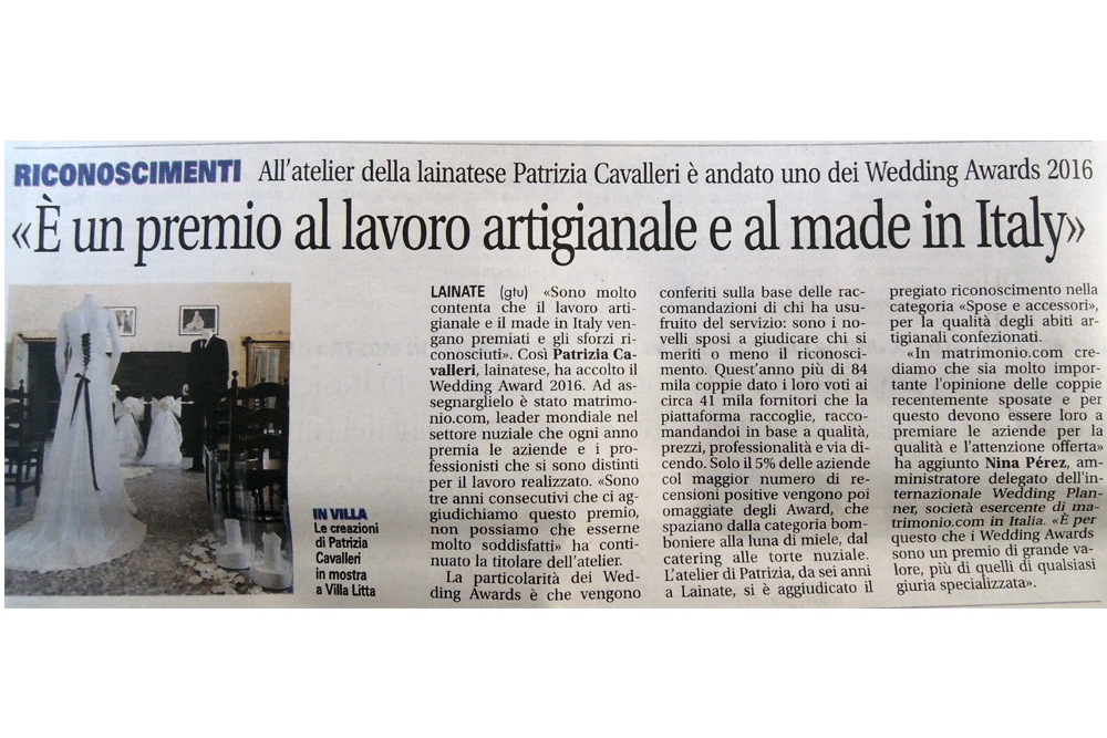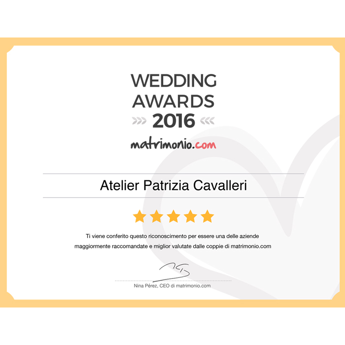 Per il terzo anno consecutivo abbiamo vinto il Winning Awards che il portale Matrimonio.com assegna alle aziende che si distinguono per il loro lavoro, premio assegnato grazie alle recensioni positive delle nostre spose. Un grande grazie a tutte voi che avete contribuito a farci vincere, anche per il 2016, questo ambito premio. Scarica l'allegato per leggere tutto il comunicato stampa con l'assegnazione del premio.