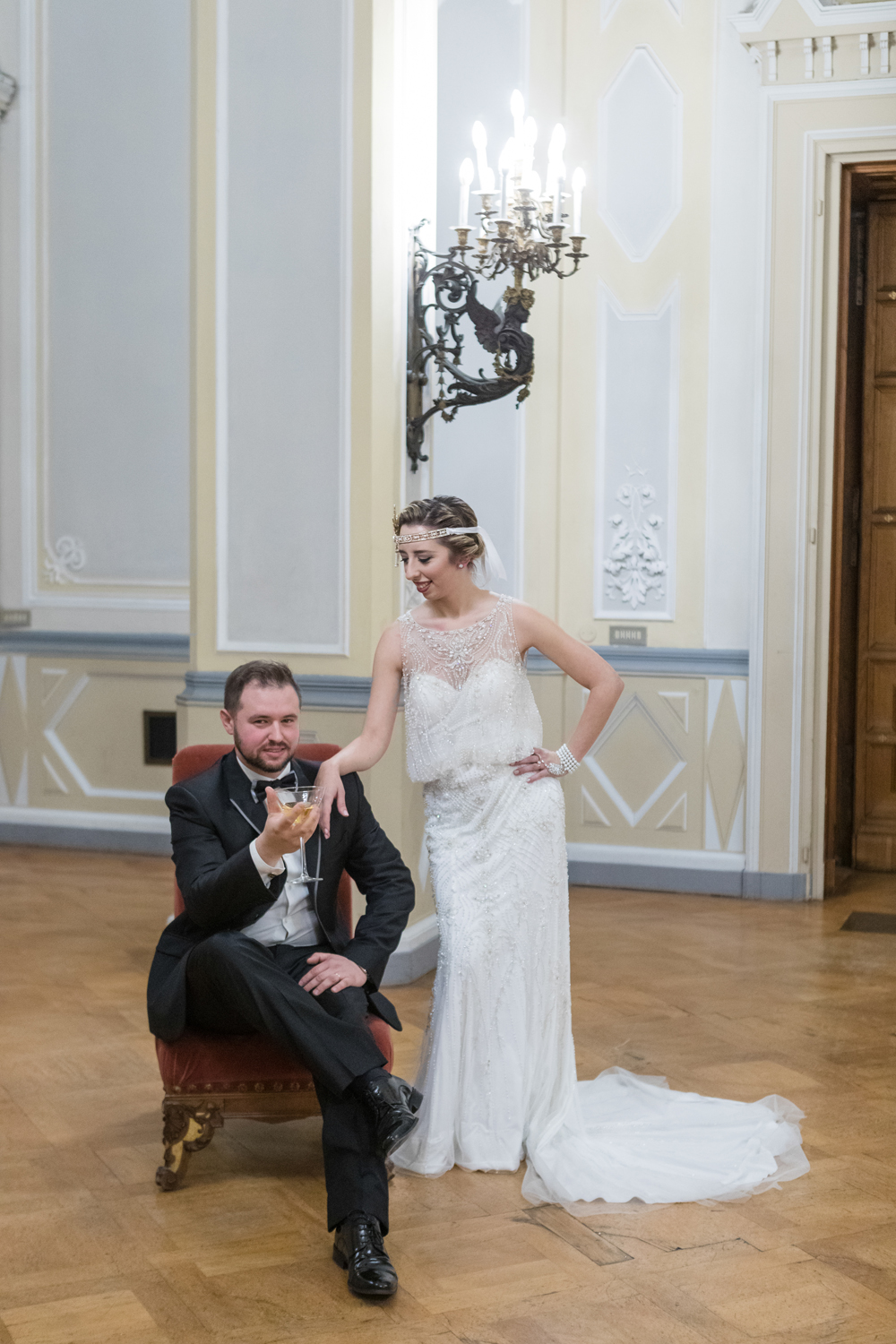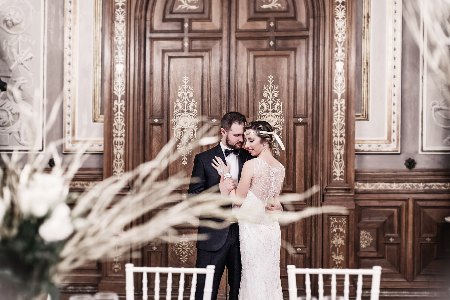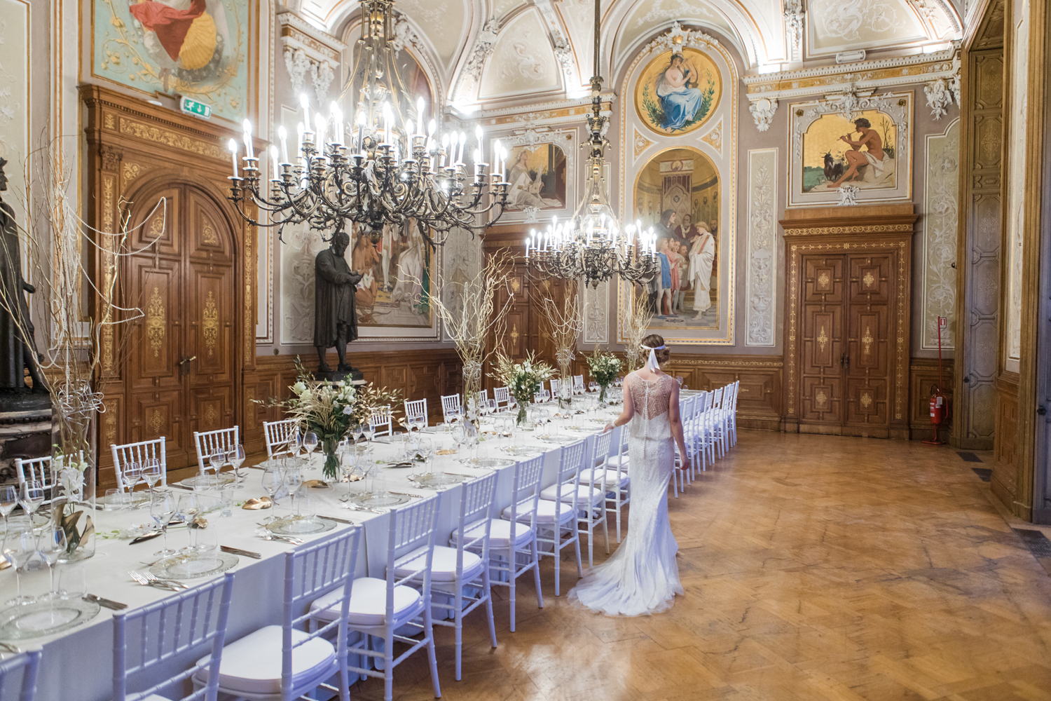 "La location Ville Ponti di Varese mi è sembrata subito perfetta per rappresentare la dimora di Gatsby e dove si svolgevano le feste raccontate nel famoso romanzo, il tema di conseguenza per il dress code degli invitati erano gli anni ’20-’30. Tutta l’atmosfera della festa ruotava intorno a quei decenni, dalle decorazioni, alla musica e a dettagli degli allestimenti."