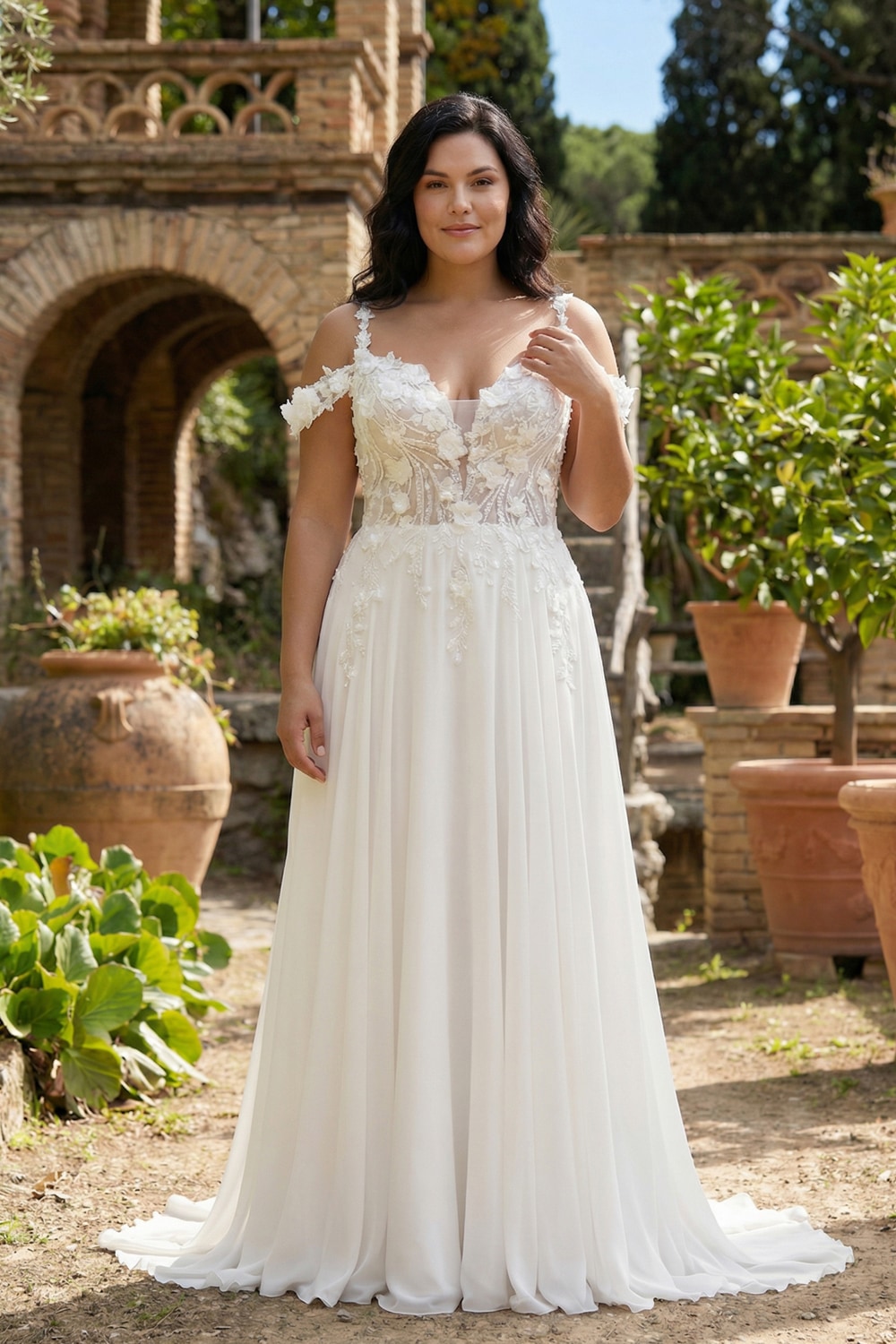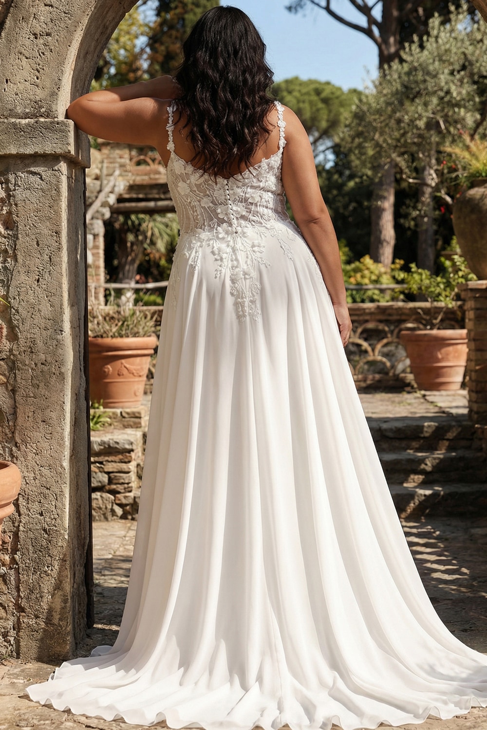 #Schiena nuda #Scollo a V #Scivolato #Curvy #Chiffon #Pizzo 3 D