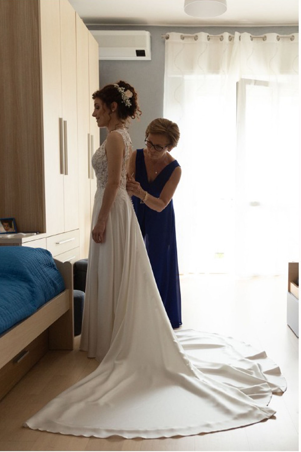 Sono stata guidata nella scelta considerando i miei gusti, la mia personalità e come avevamo immaginato il nostro matrimonio, non soffermandosi solo all'abito ma dandomi consigli rispetto a tutto quello che mi riguardava ( acconciatura, orecchini ecc).