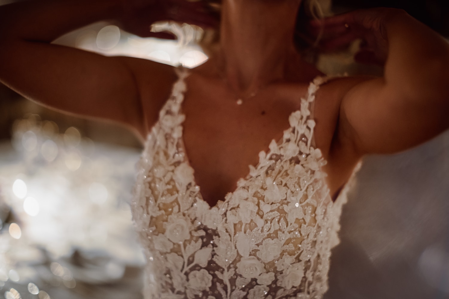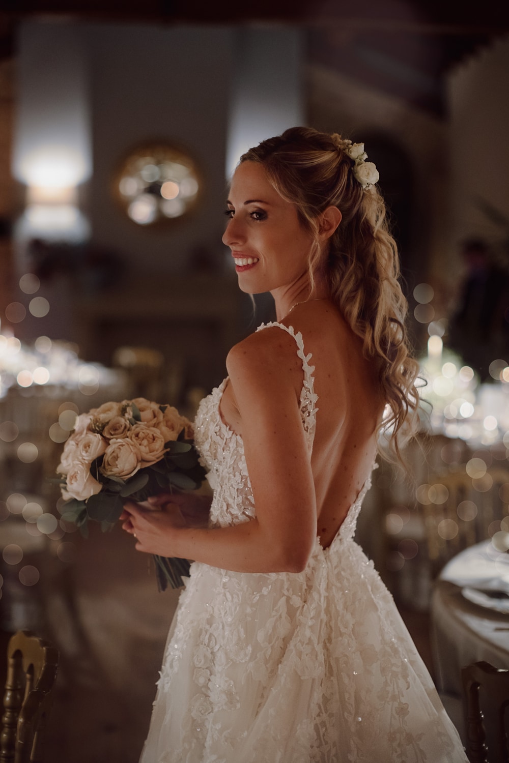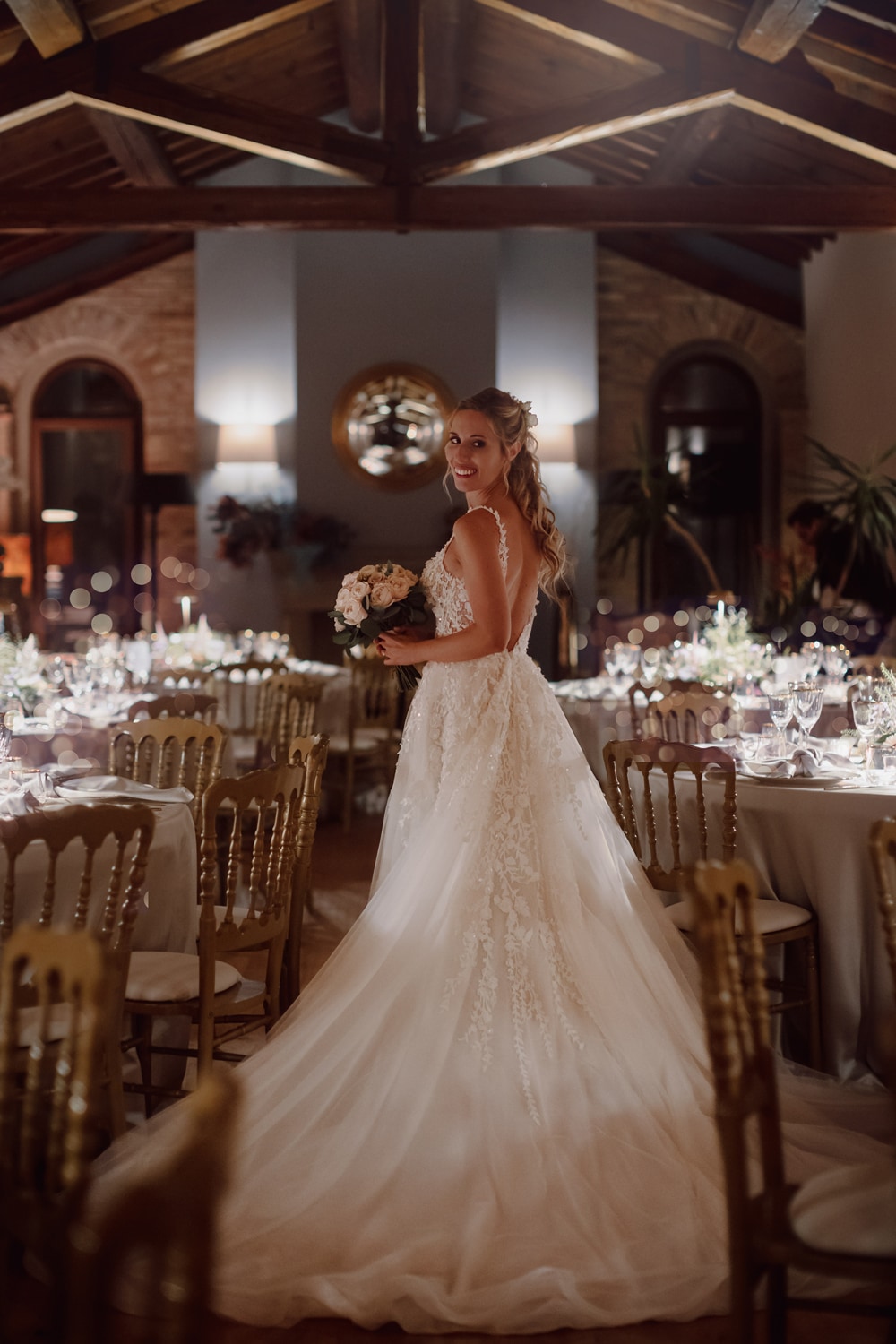 Durante gli incontri ho imparato a camminare con il vestito, a sedermi, a salire e scendere dalla macchina con l’abito…i consigli di Patrizia sono stati veramente fondamentali per il giorno del matrimonio