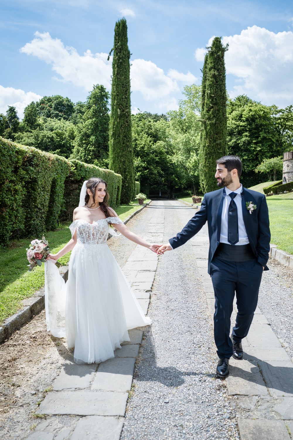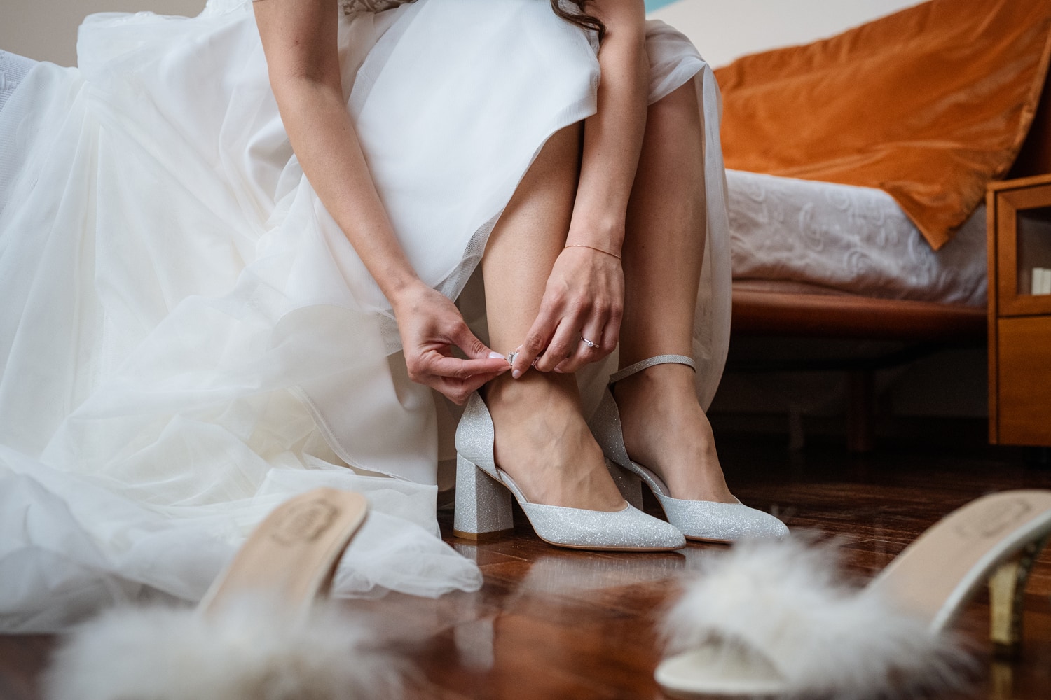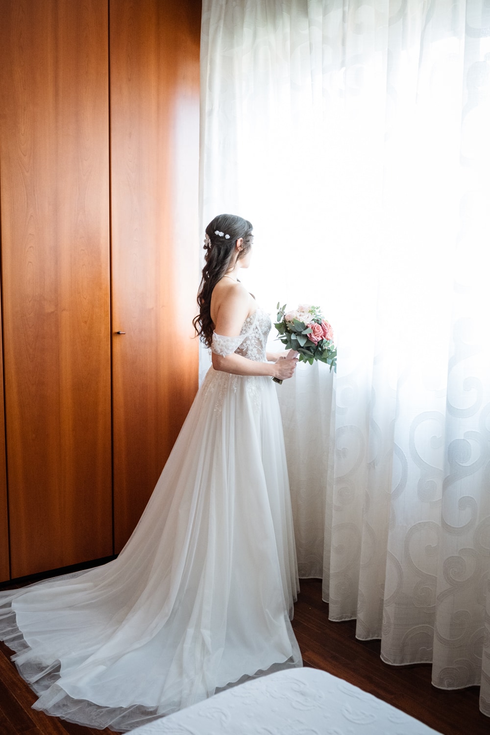 Le tre prove successive sono state momenti fondamentali, non solo per i dettagli sartoriali, ma anche per la preparazione emotiva e pratica al grande giorno. Patrizia mi ha guidata con attenzione e dolcezza: mi ha mostrato come camminare, come tenere il bouquet, come sedermi e muovermi per sentirmi sempre a mio agio.