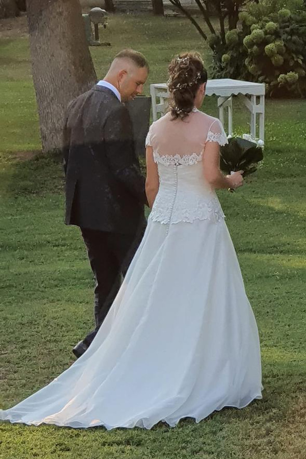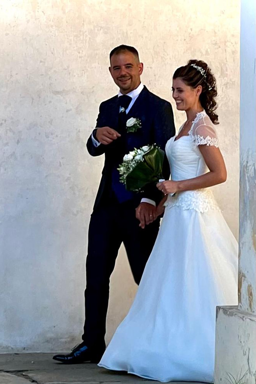 Ho conosciuto l’atelier di Patrizia per caso tramite Facebook, ho iniziato a seguire la sua pagina perché mi ero innamorata dei suoi abiti e volevo indossare uno dei suoi per il mio matrimonio. Il primo approccio con Patrizia è avvenuto tramite una videochiamata in cui ci siamo conosciute, mi ha fatto tante domande tra cui come immaginavo il mio vestito, com’era la location e come mi sarei vista in quell’occasione. È stata brava perché ha capito me ma soprattutto il mio genere tant’è che al primo appuntamento nella ricerca del “mio” vestito mi ha proposto vari modelli e alla fine è arrivato “lui” che mi ha scelto e mi ha fatto battere il cuore fin dall’inizio.