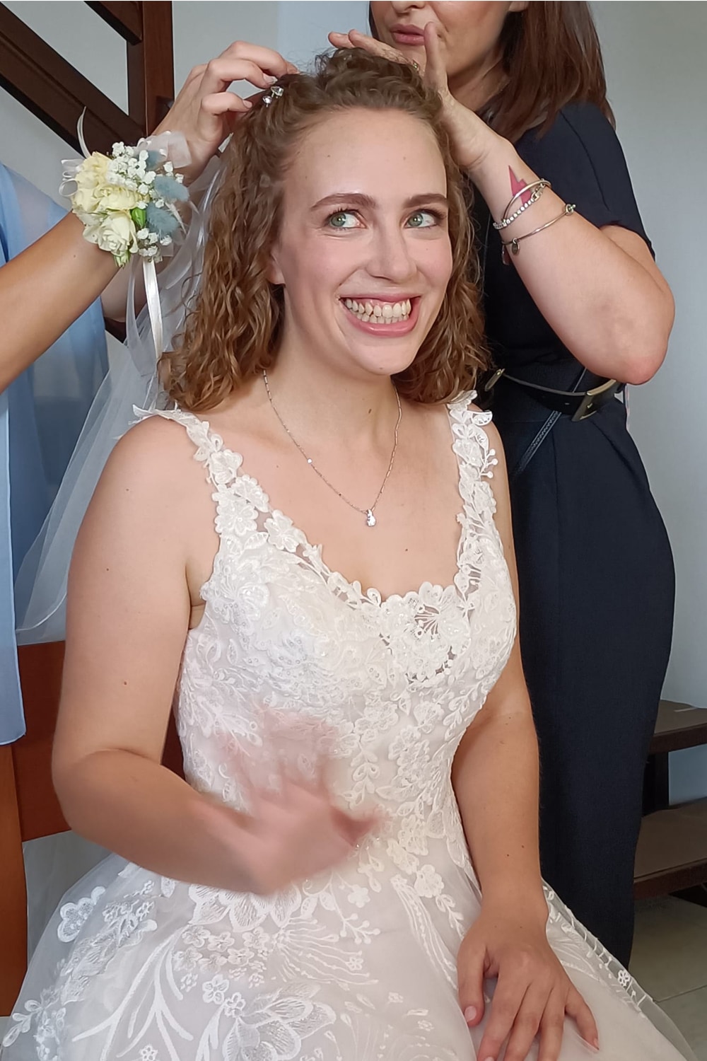 Ho provato un paio di veli, ma poi ho scelto di utilizzare il velo di mia mamma. Mi è comunque stato molto utile provare gli accessori disponibili in atelier per avere un confronto su quelli che avevo pensato di mettere, mi ha schiarito le idee e mi ha aiutata a prendere una decisione.