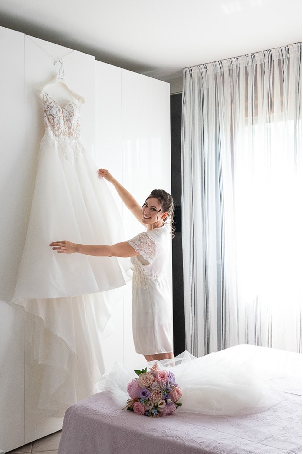 La videochiamata, oltre che un primo segnale di attenzione nei confronti della sposa, è stata un utilissimo punto di partenza per il primo appuntamento perché Patrizia aveva già pensato per me alcuni abiti da propormi.