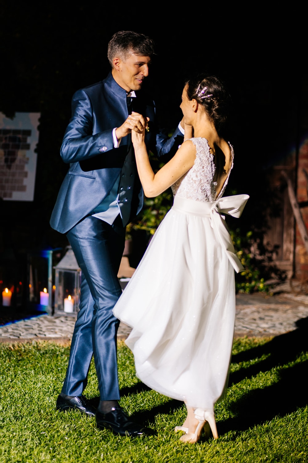 Causa altezza di mio marito, ho indossato delle scarpe veramente alte, era come se non le avessi ai piedi morbide e confortevoli… unico problema da bianche le ho trasfomate in beige, ma questo vuol dire che proprio non le ho mai tolte, neanche per il primo ballo.
