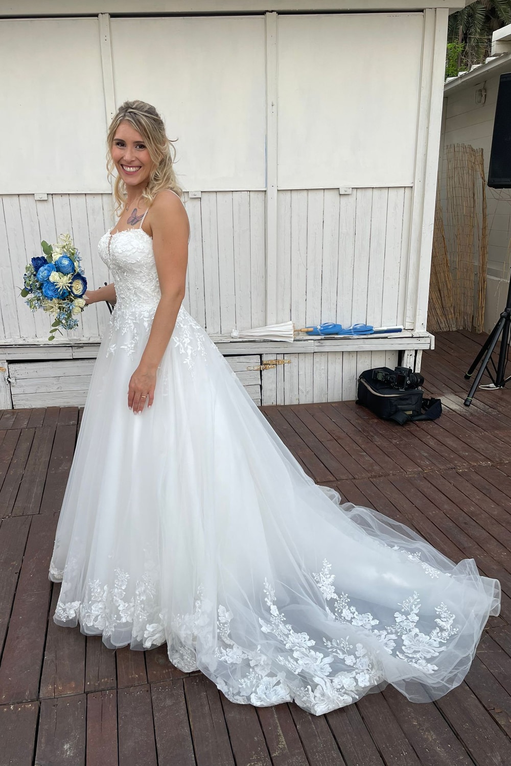 Ho iniziato a seguire l'atelier tramite Istagram e appena ho visto l'abito me ne sono subito innamorata, così ho chiamato per chiedere alcune informazioni e mi è stato detto che l'abito sarebbe ancora dovuto arrivare perché nuova collezione, così ho aspettato che arrivasse, nel frattempo con Patrizia abbiamo fatto una videochiamata conoscitiva molto utile a me e a lei per conoscere il mio corpo, miei gusti e il Mood del matrimonio e poi ecco finalmente la prima prova.