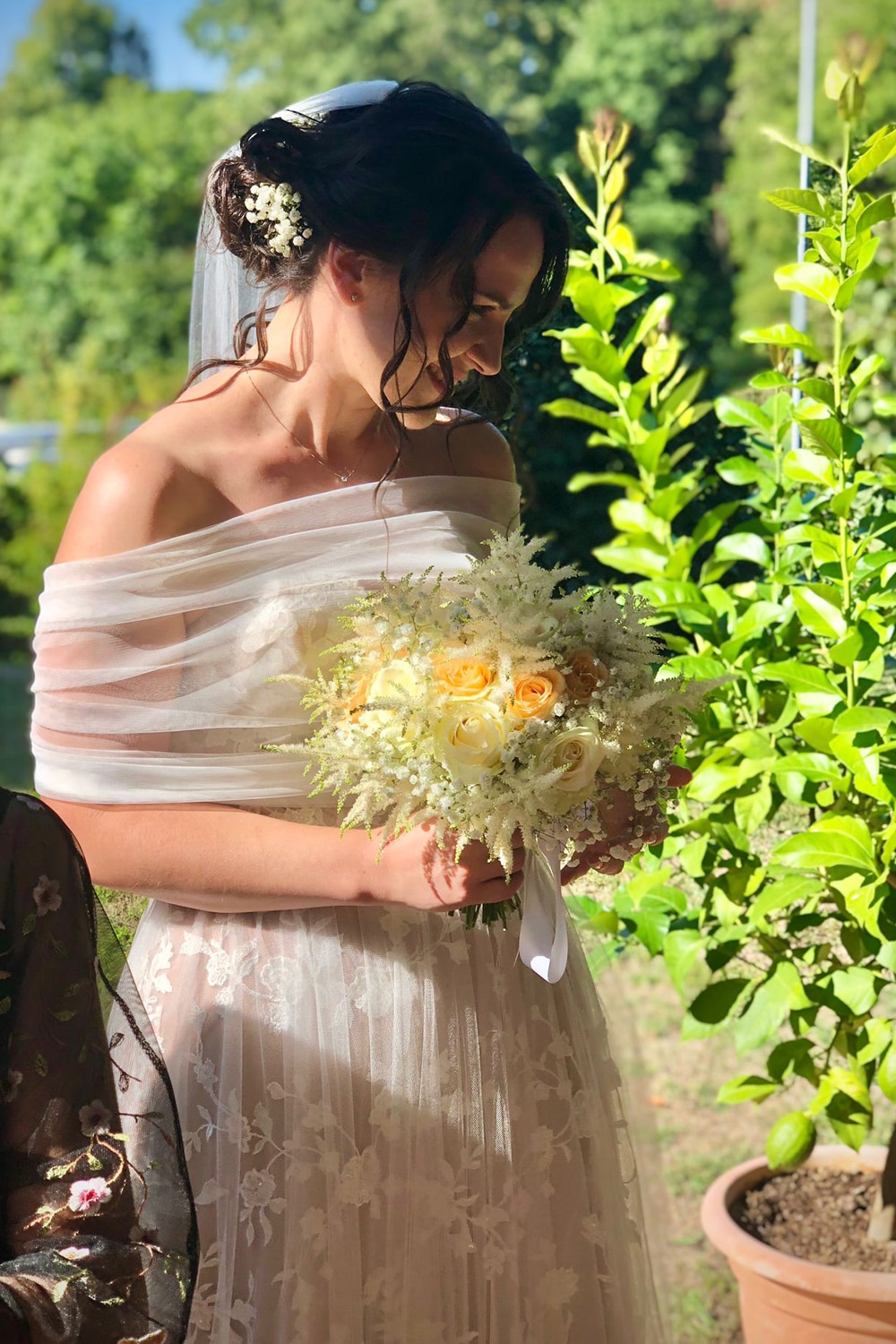 Ho trovato Patrizia e io suo atelier per caso, cercando abiti e negozi vicini a me. Mai scelta fu così azzeccata! Il percorso fatto insieme, dalla videochiamata e poi alle varie prove è stato semplice, pochi intoppi, ma non per questo meno emozionante! Mi sono sentita sempre coccolata e capita, al centro di una rete costruita per me! Colpisce come questo possa essere creato appositamente per ogni sposa, su misura! Consiglio assolutamente!