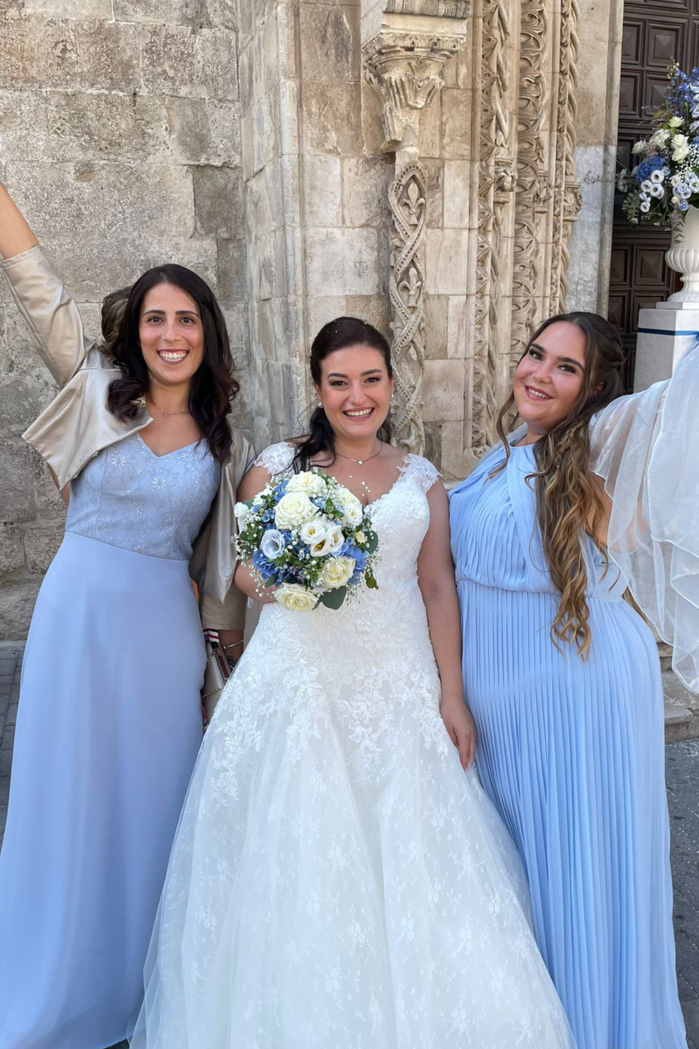 Era il lontano 2019 quando abbiamo iniziato questo percorso insieme, ricordo che il giorno della scelta dell'abito sono arrivata lì delle idee di abito totalmente diversa da quello che ho poi effettivamente scelto. Patrizia mi ha fatto provare quello che più mi piaceva ma quando mi ha fatto provare l'abito che secondo lei era più adatto a me è riuscita a sorprendermi infatti è stato amore a prima vista. Vi ringrazio per la pazienza e il lungo percorso fatto insieme non potevo scegliere atelier migliore mi sono sentita coccolata ogni volta.