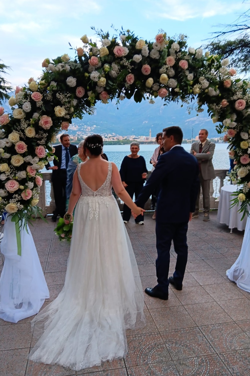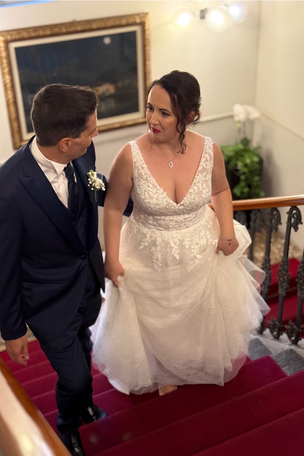 Per quanto mi riguarda questa modalità è stata vincente, perché mi ha permesso di provare un numero di abiti adeguato (né pochi né troppi) e guidata da Patrizia sono riuscita a scegliere quello che più faceva per me, per valorizzare il mio fisico e in linea con la location scelta.