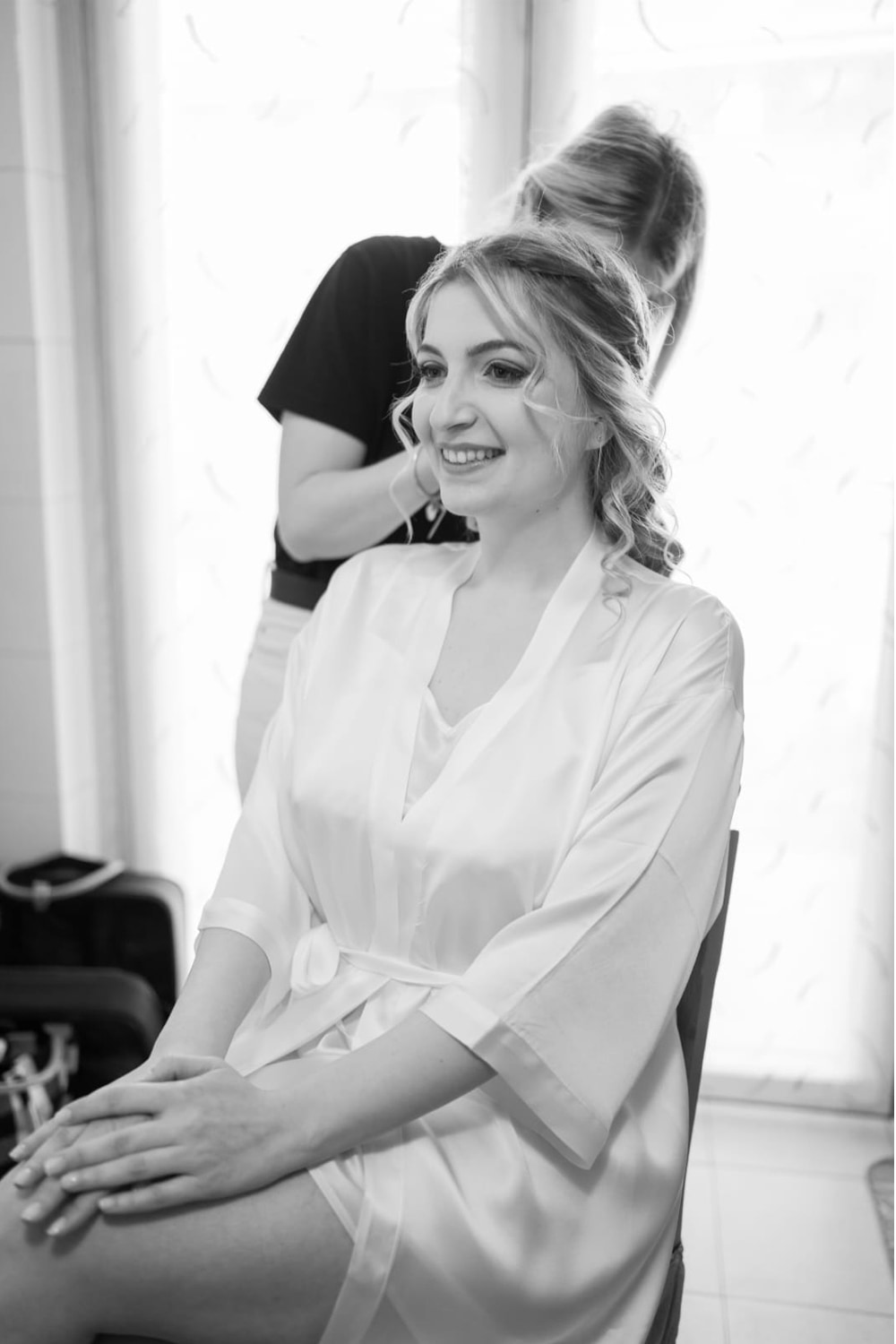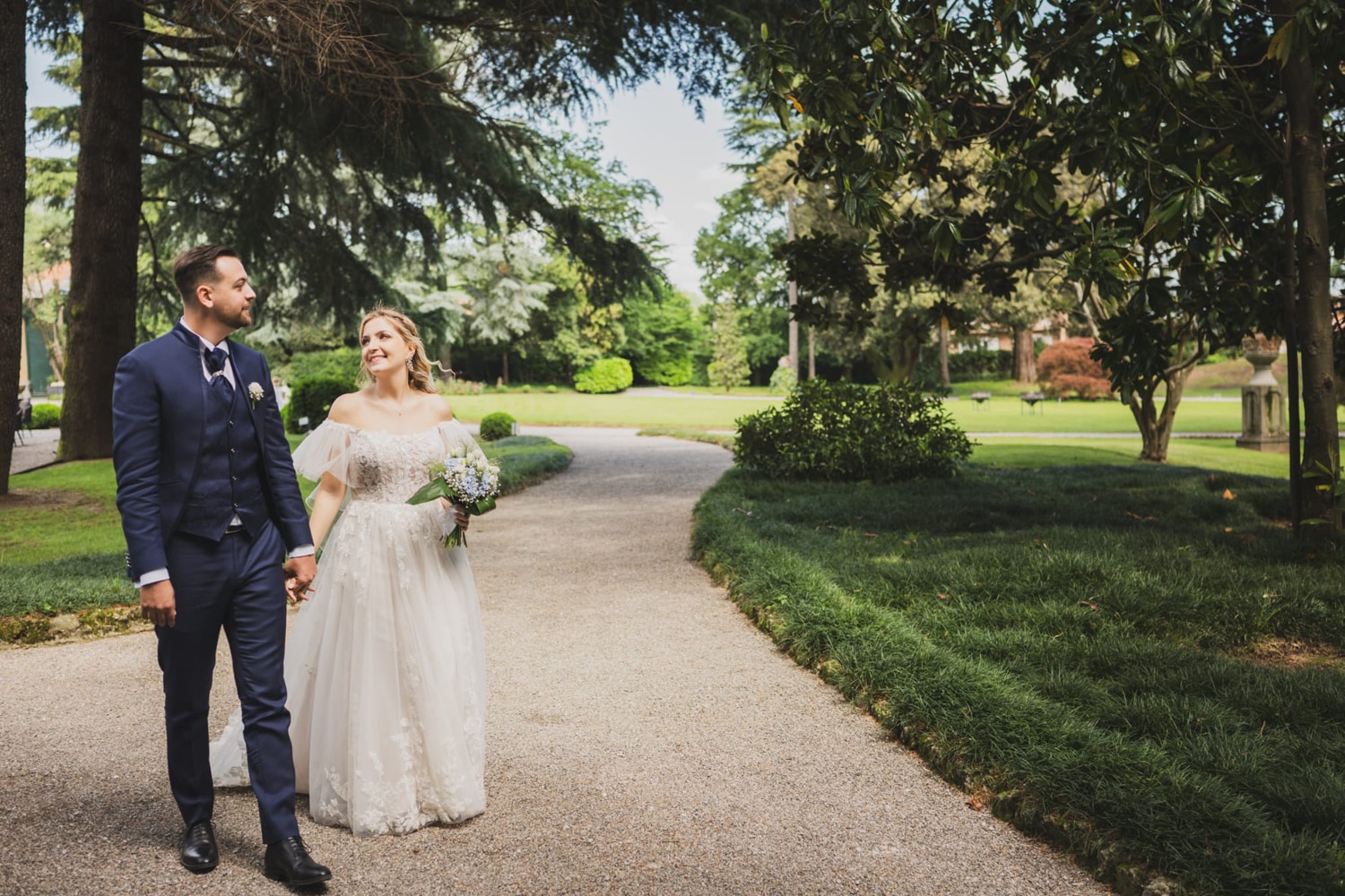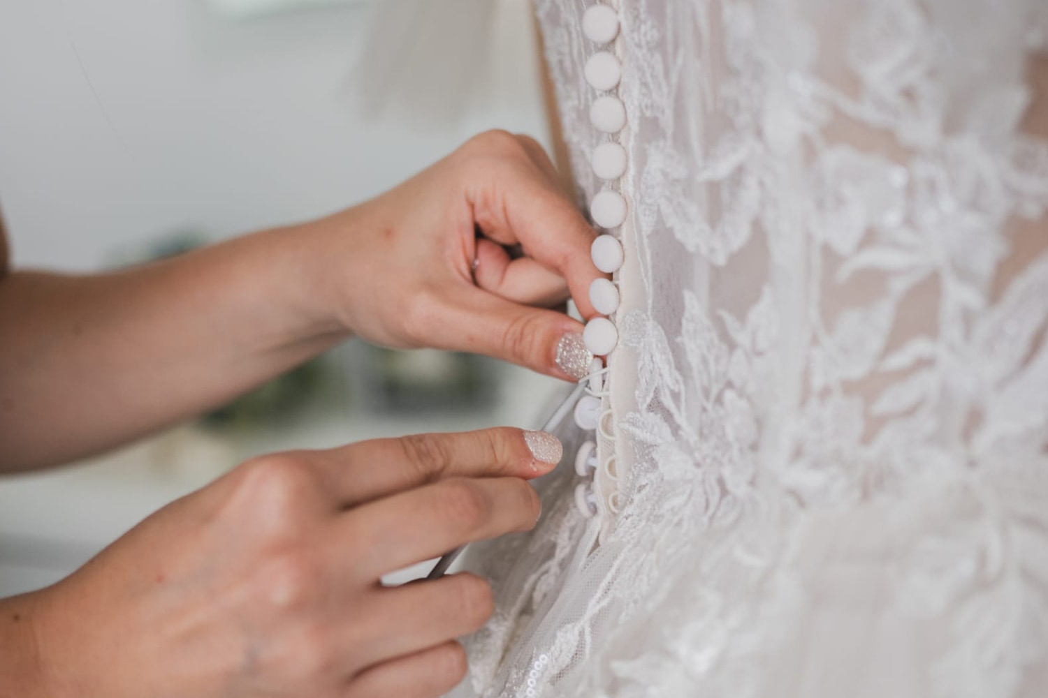 La prima volta in atelier ero molto agitata, avevo la fissazione che non avrei trovato il mio abito e il pensiero mi rattristiva anche perché ci tenevo molto a trovarlo lì da lei. Arrivata avevo in camerino 4 abiti che mi attendevano, infilato il primo e uscita dal camerino abbiamo iniziato a capire cosa mi piacesse e cosa non mi piacesse dell’abito e così per tutti i successivi. In realtà, infilato il secondo abito, mi sono commossa immediatamente guardandomi allo specchio.