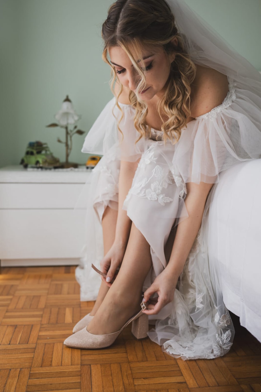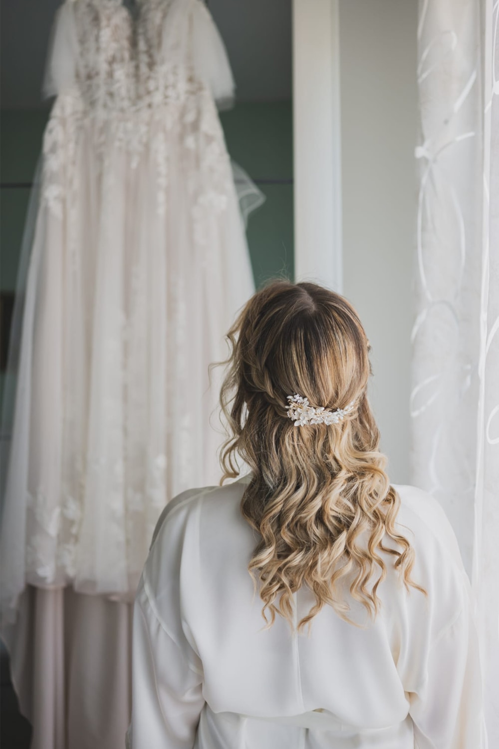 Da Patrizia poi ho comprato anche le scarpe, super comode, gli accessori come fermaglio per i capelli e gli orecchini, su quest'ultimi ero super indecisa perché non indossavo orecchini da tanto tempo e poi erano pendenti, cosa che non avevo mai indossato. Alla prova con trucco e acconciatura però quegli orecchini completavano perfettamente il look del mio abito, ovviamente Patrizia ci aveva visto lungo sin da subito!