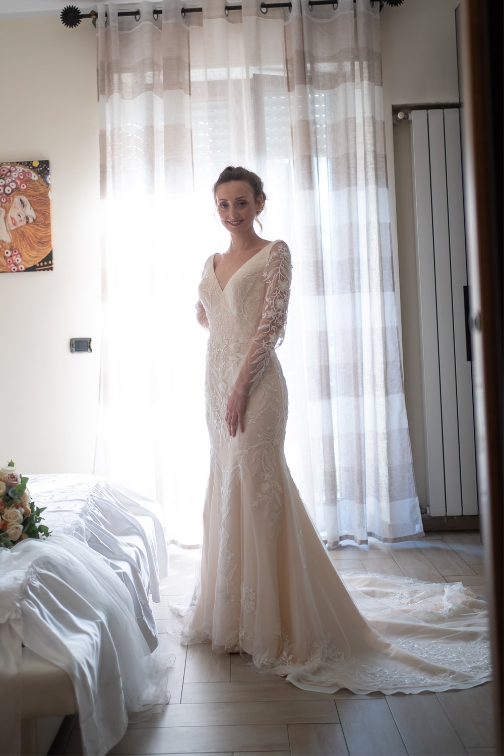 Mi sono innamorata dell’atelier di Patrizia la prima volta che sono entrata. Sapevo di poter trovare l’abito tanto desiderato per il grande giorno. Ho sempre pensato che per trovare l’abito adatto ci avrei impiegato molto tempo, invece in un solo appuntamento lei ha saputo guidarmi e ha reso il momento della scelta semplice e spontaneo. Mi sono sentita coccolata e piena di attenzioni, com’è giusto che una sposa si senta a mio parere. Patrizia sa dare il giusto peso alle parole nonostante la schiettezza e la sincerità con cui esprime le sue opinioni. Ecco, questo mi da fiducia! In tutte le prove mi sono sempre sentita al centro dell’attenzione. Tutti i consigli mi sono serviti a gestire meglio l’abito, soprattutto la coda e il velo, il giorno del matrimonio.